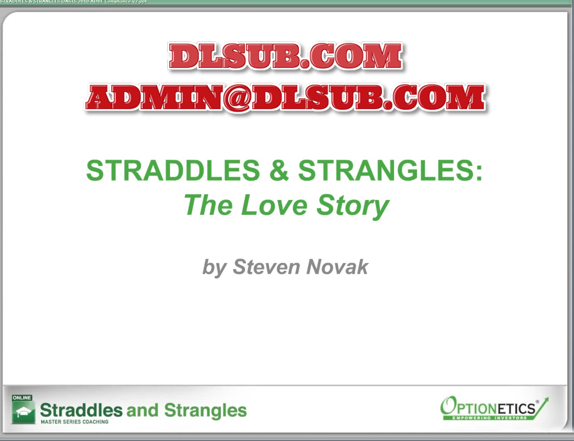 Optionetics Straddles And Strangles Master Series Coaching Class Steven Novak Usd 2495