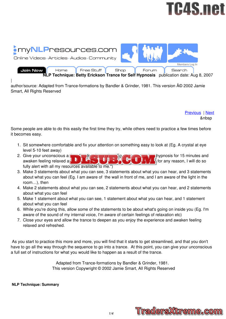 Betty Erickson Self Hypnosis Technique Michael Watson - JPG Image File