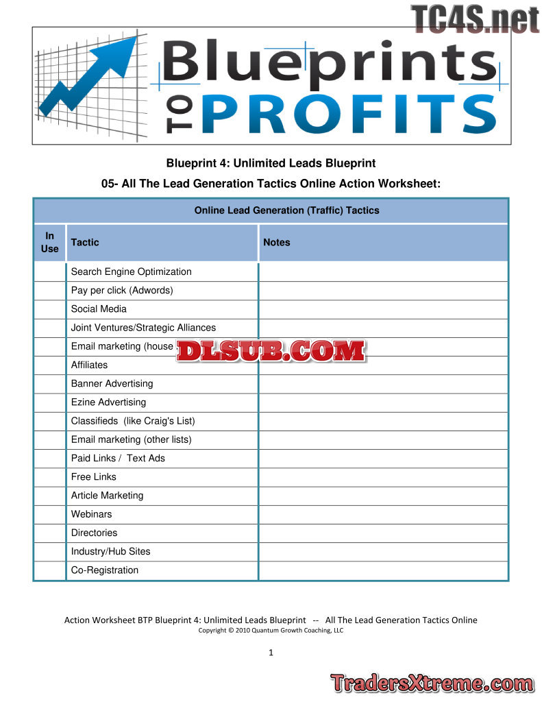 Ulb 05 All The Lead Generation Tactics Online Action Worksheet - JPG Image File