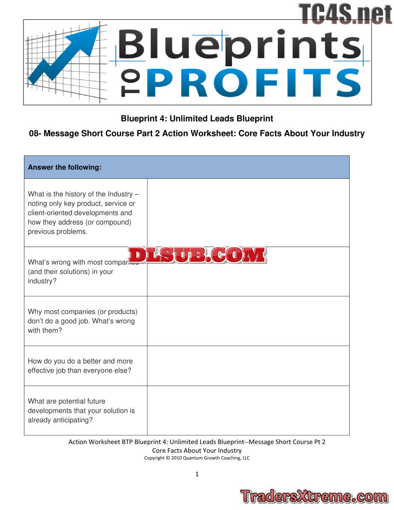 Ulb 08 Message Short Course Pt2 Core Facts About Your Industry Action Worksheet - JPG Image File