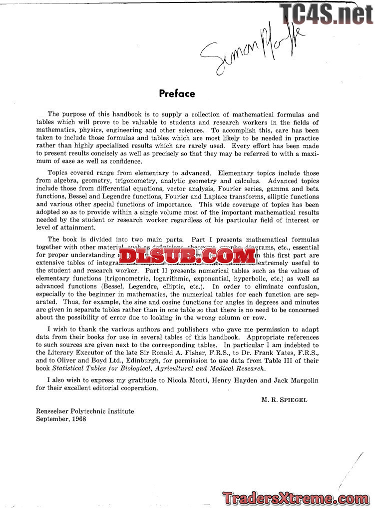 Schaums Mathematical Handbook Of Formulas And Tables - JPG Image File