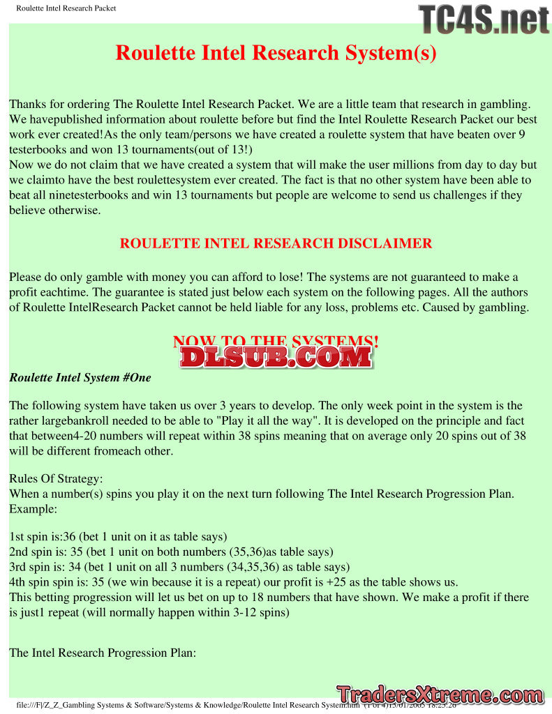 Roulette Intel Research Packet - JPG Image File