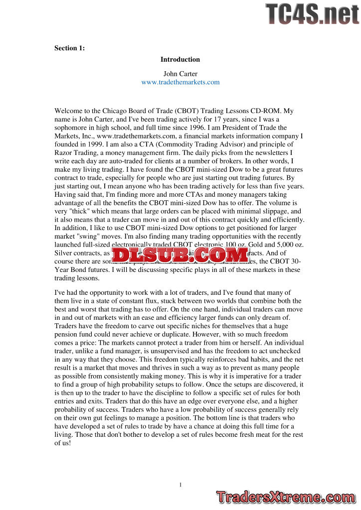 John Carter Chicago Board Of Trade Cbot Trading Lessons Workbook Usd 18 Tradethemarkets